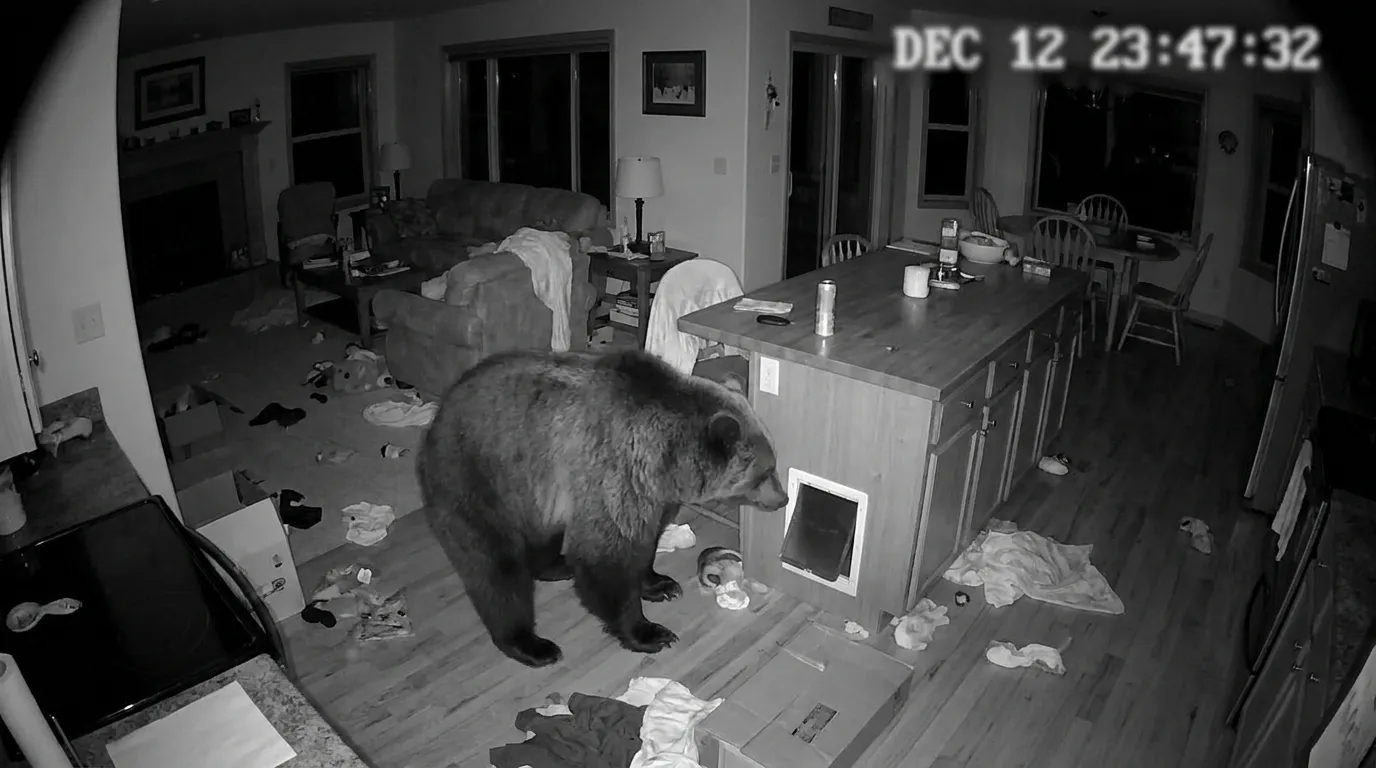 The answer is as chilling as it is absurd. The Millers had recently installed a "large breed" doggy door for their Alaskan Malamute. While the door was heavy-duty, it wasn't "Grizzly-proof." Security cameras captured the moment the bear, likely attracted by the scent of a leftover pizza box on the kitchen counter, approached the back deck.